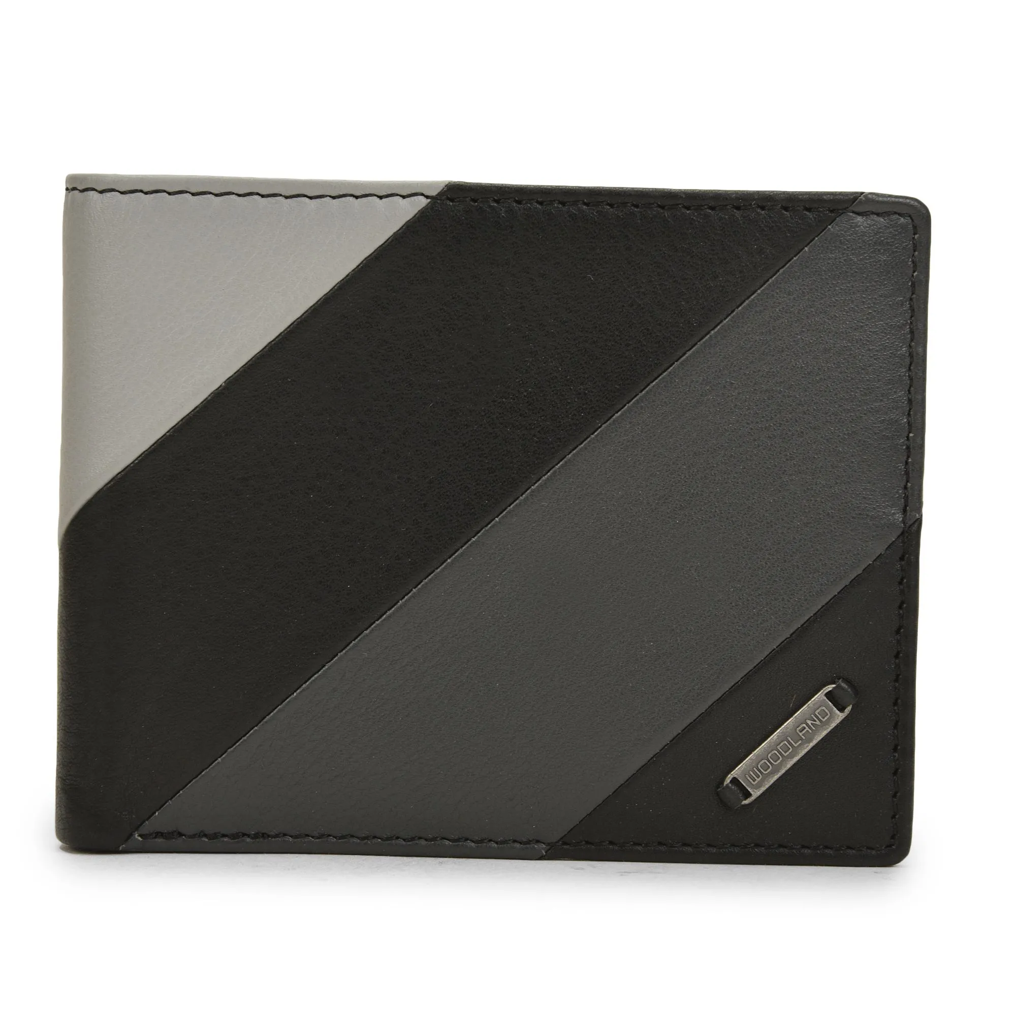 - Sleek bifold wallet for men is crafted from soft luxurious leather and features multiple card slots, currency space, Woodland logo in the exterior of the wallet, and dual color detail in black and grey.