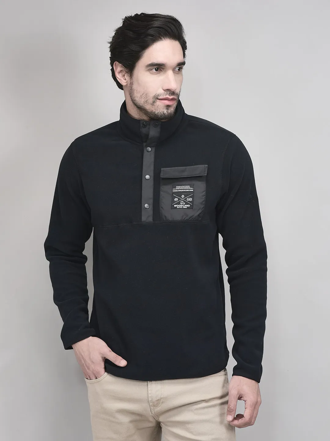 Black Polyester Men Polar Fleece Sweatshirt | WOODLAND