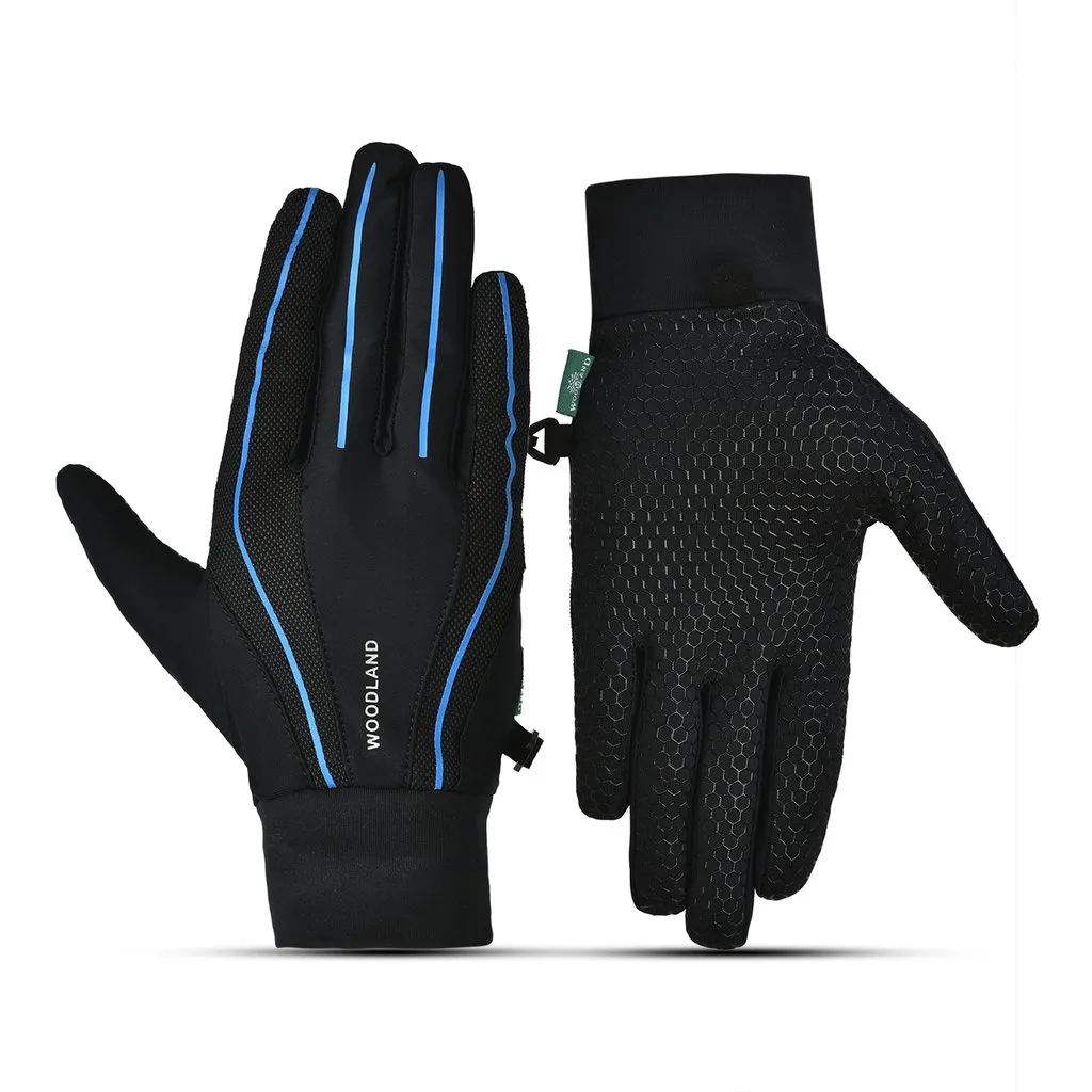 • Black Unisex gloves are completely covered with silicone on palm that gives it anti-slip properties giving you a firm grip while driving or when holding things. Designed from polyester the gloves feature a stretchy elastic detail on wrist that gives a comfortable & secure fit and also easily fits into your hand. The gloves are unisex and finished with smart Woodland branding on the back of the hand and lobster clasps on side that makes it convenient to hang the gloves to your bag or clothing.