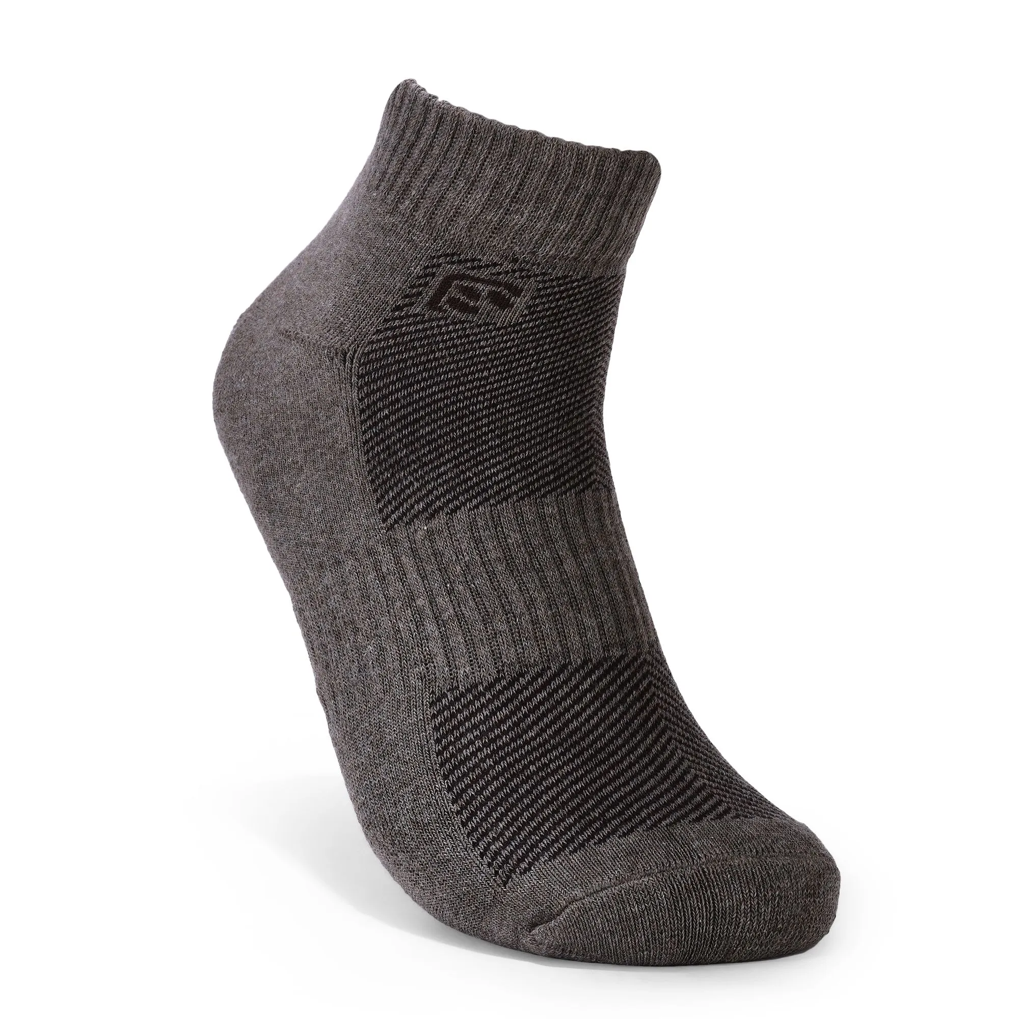 Versatile ankle sock in light brown has an athletic look to it with woven cushioned fit. Cotton and polyester construction wicks away moisture and keeps feet comfortable. Broad ribbed detail helps the sock stay put and the arch support gives a perfect fit.