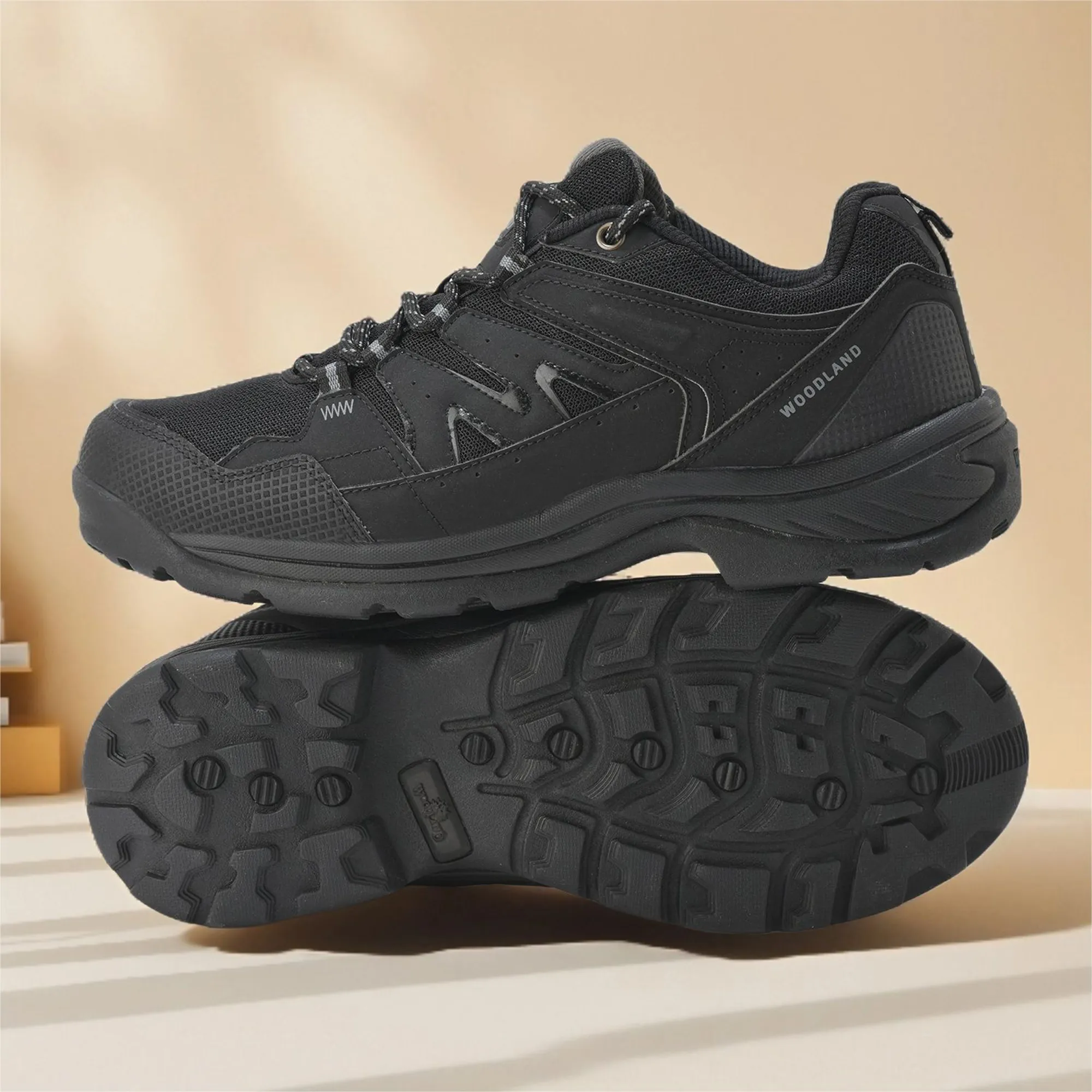 Mesh Pu Black Hiking Shoes For Men | WOODLAND