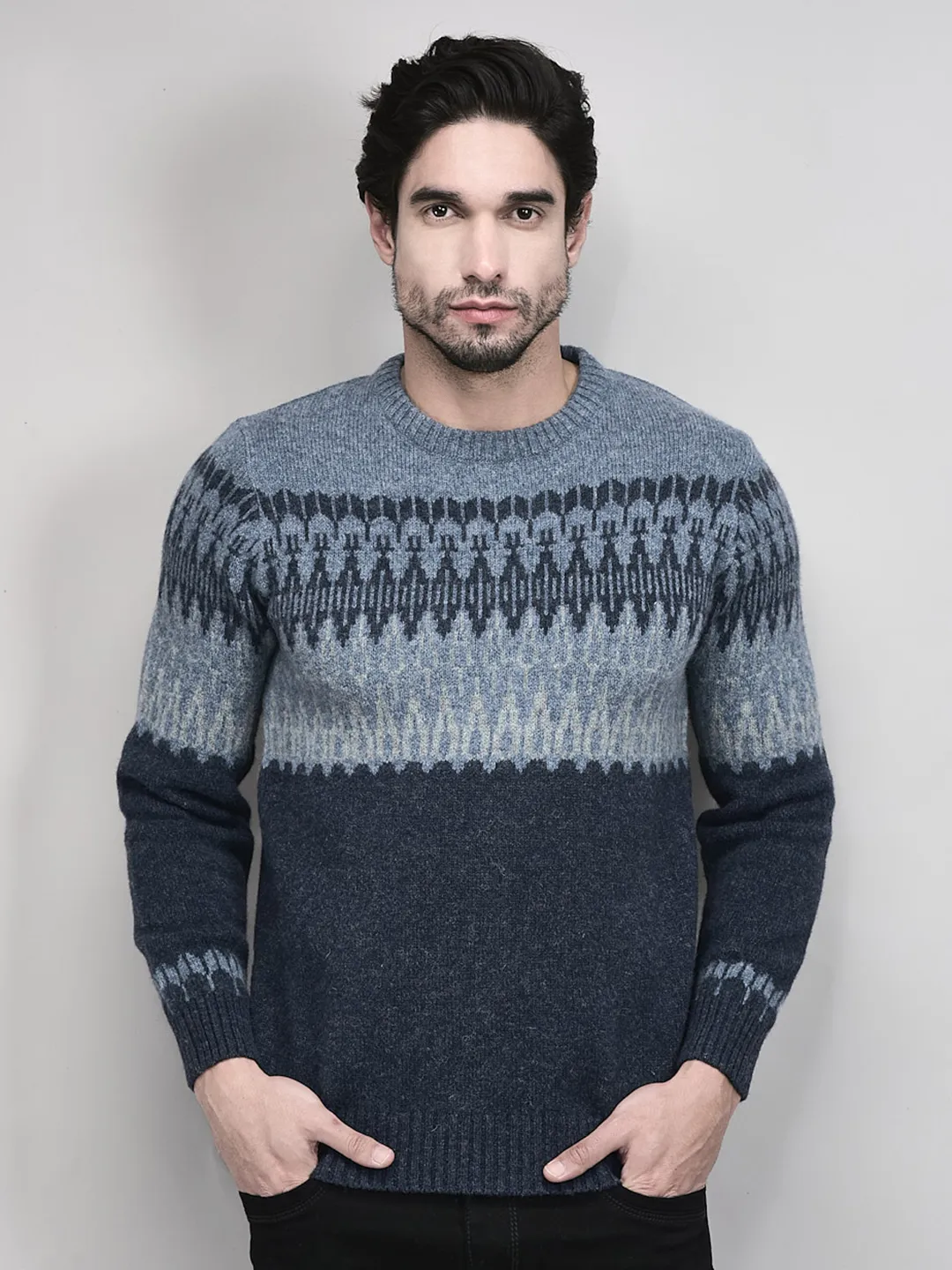 Navy Multicolor Woolen Jacquard Pullover | WOODLAND