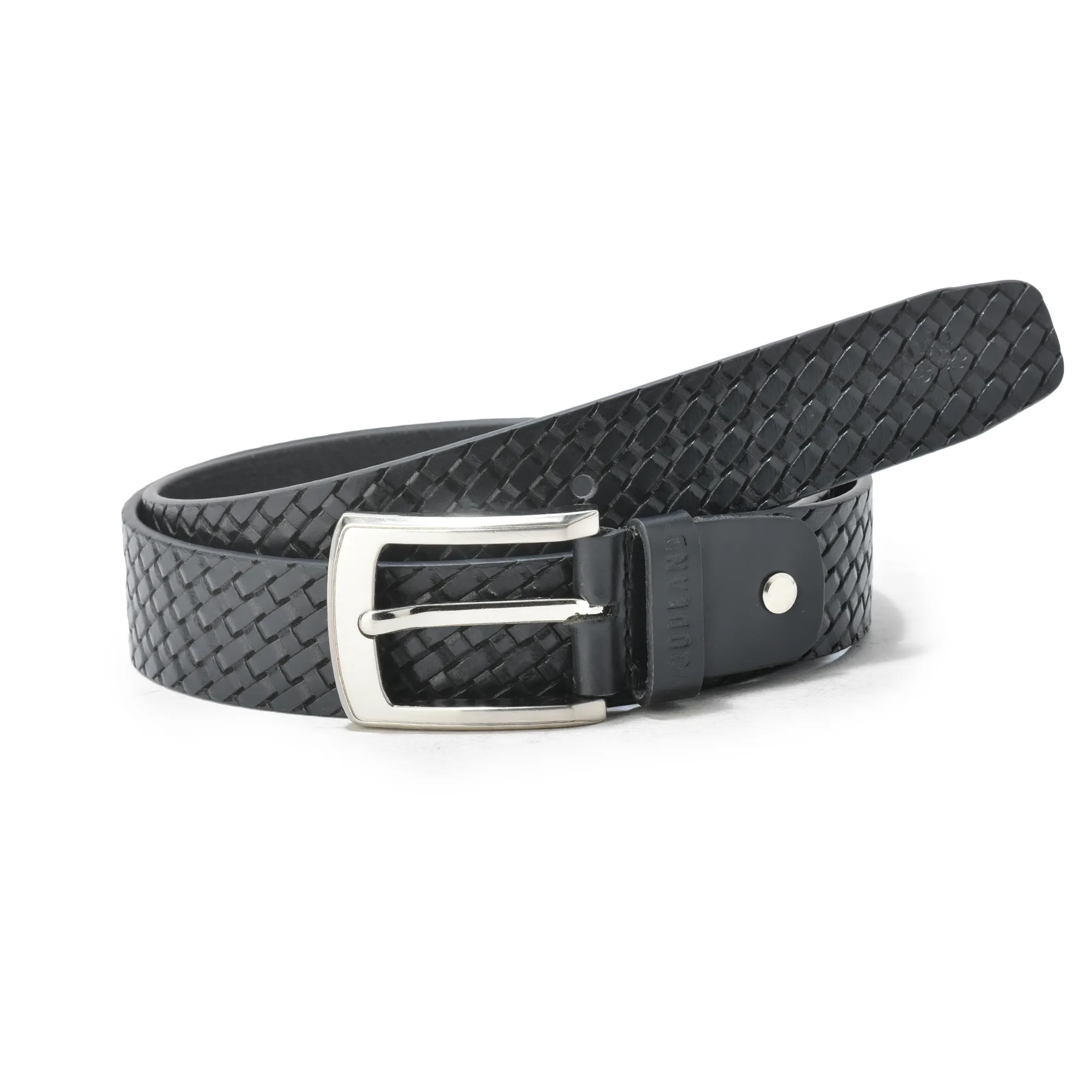 Woodland Embossed Grid Deisgn Black Leather Belt