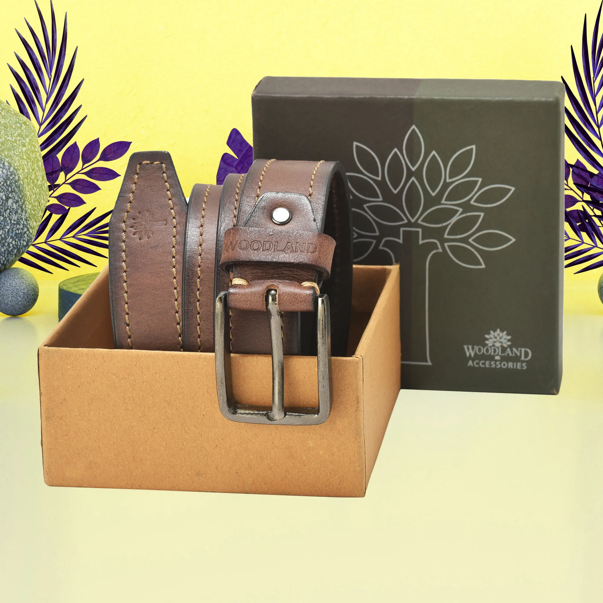 Woodland Matte Buckle Brown Mens Leather Belt | WOODLAND