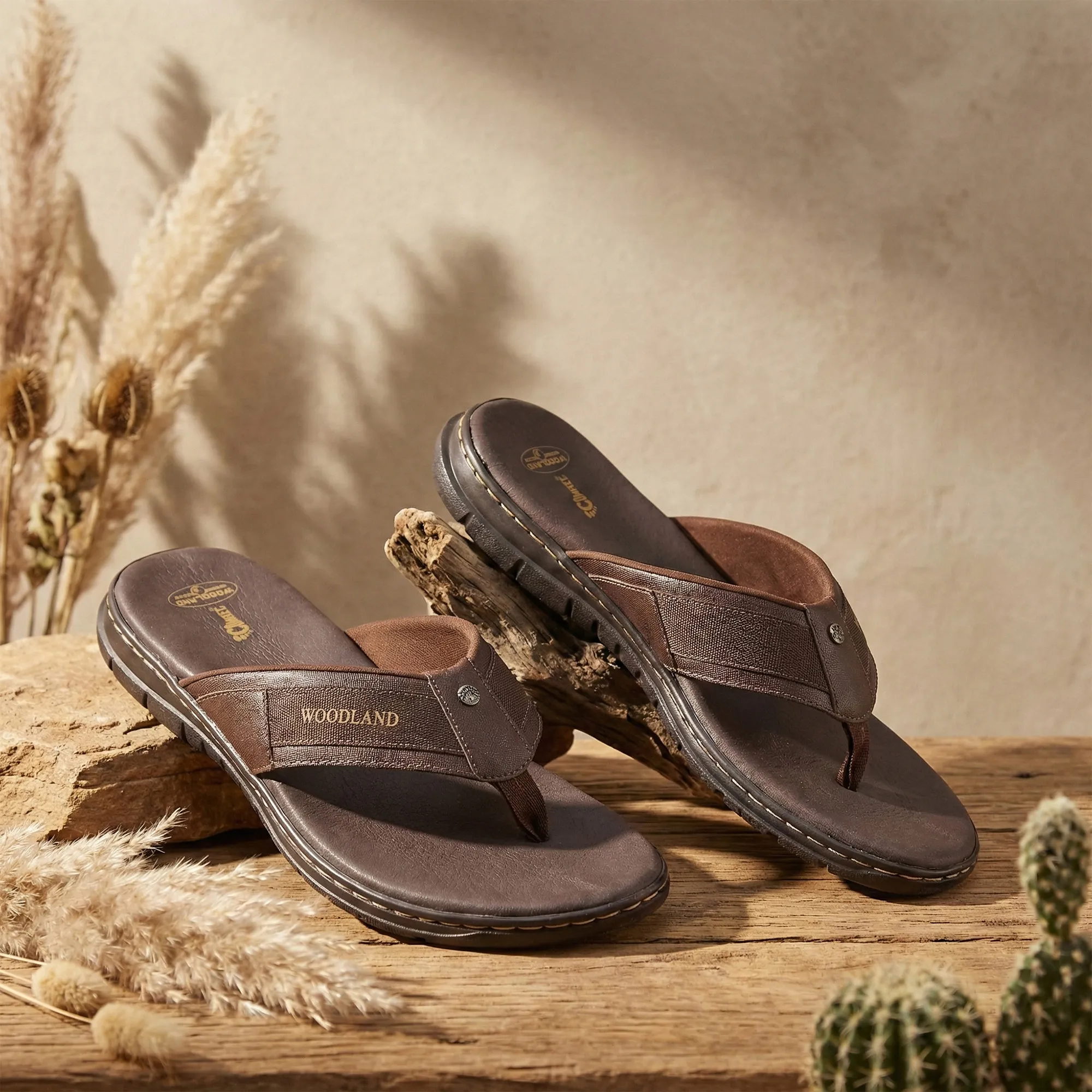 Woodland Men’S Brown Leather Relaxed Wear Slippers | WOODLAN