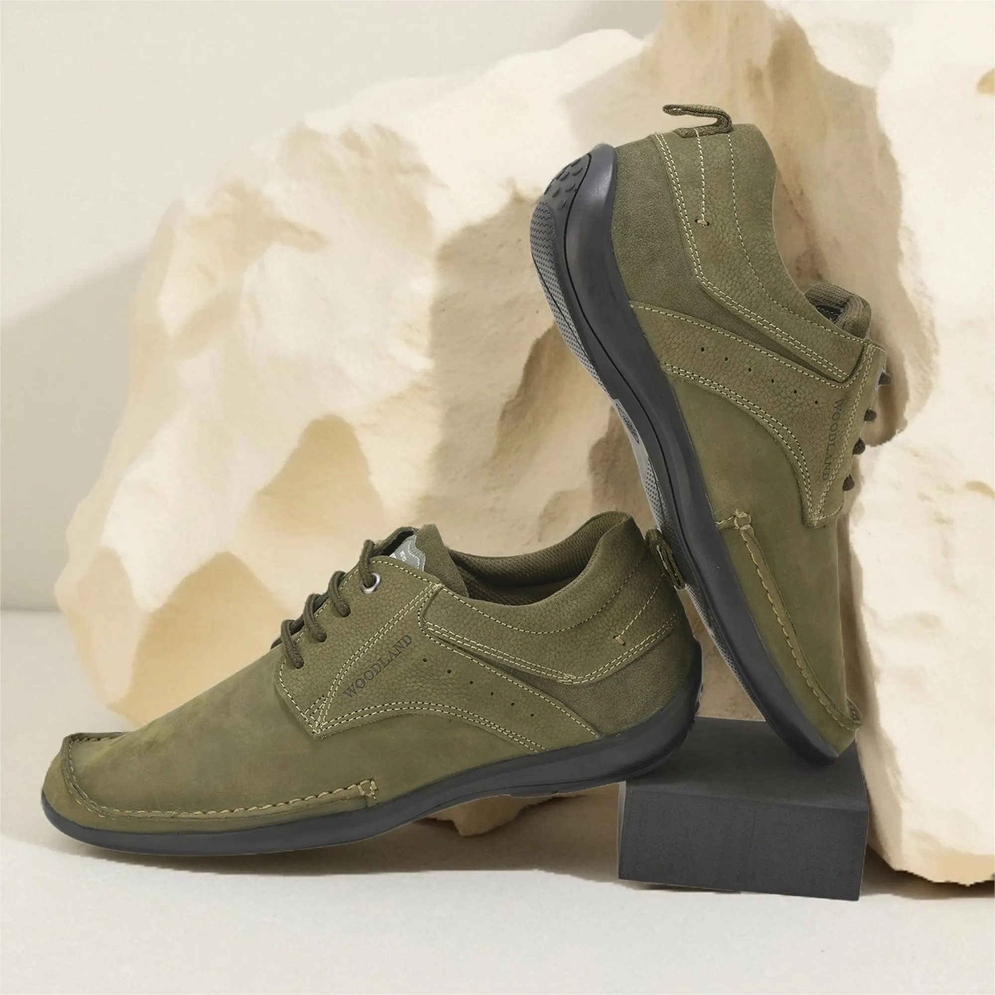 Woodland Men’S Olive Green Nubuk Casual Shoes | WOODLAND