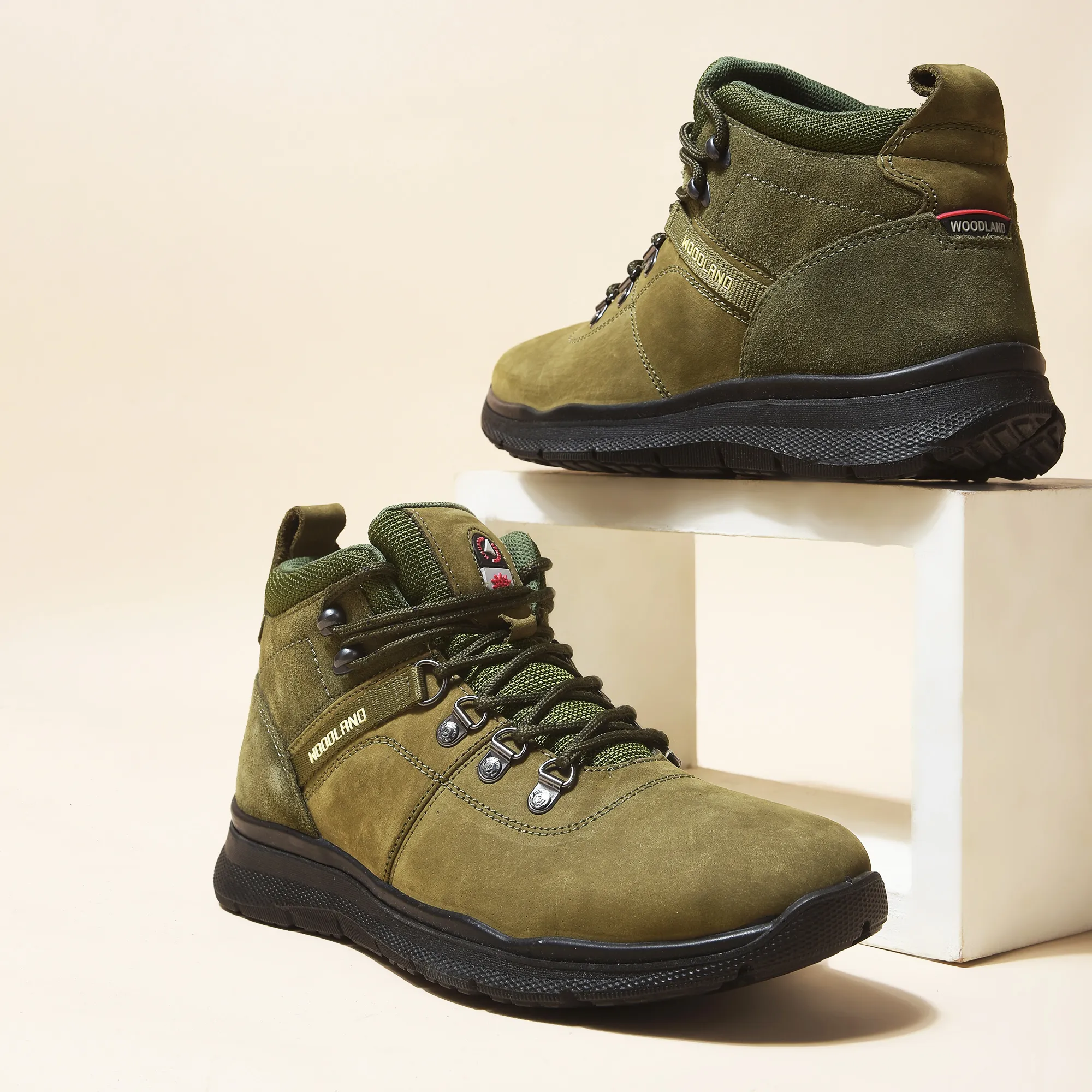 Woodland Olive Green Mid-top Boots for Men | WOODLAND