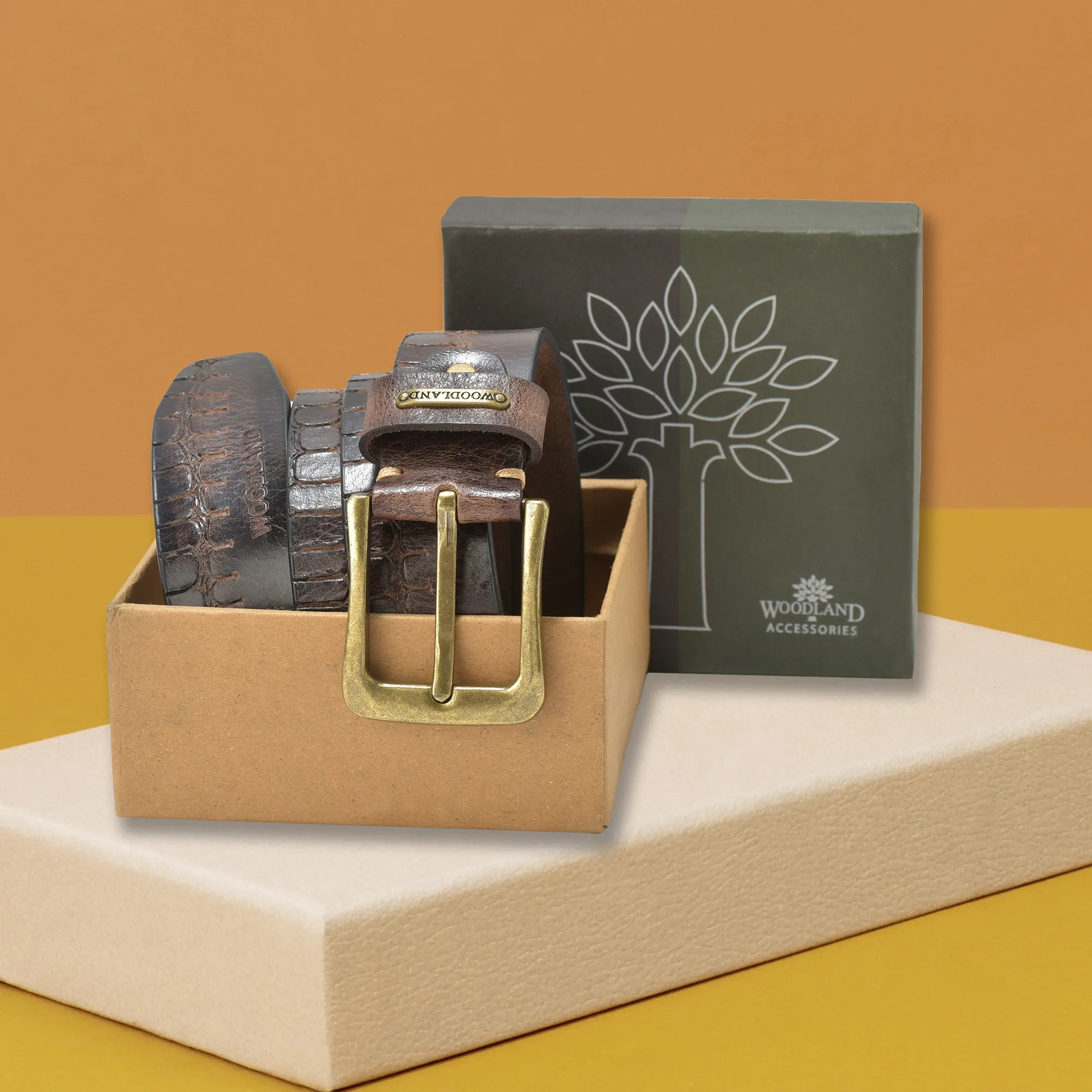 Woodland Softy Brown Leather Belt | WOODLAND