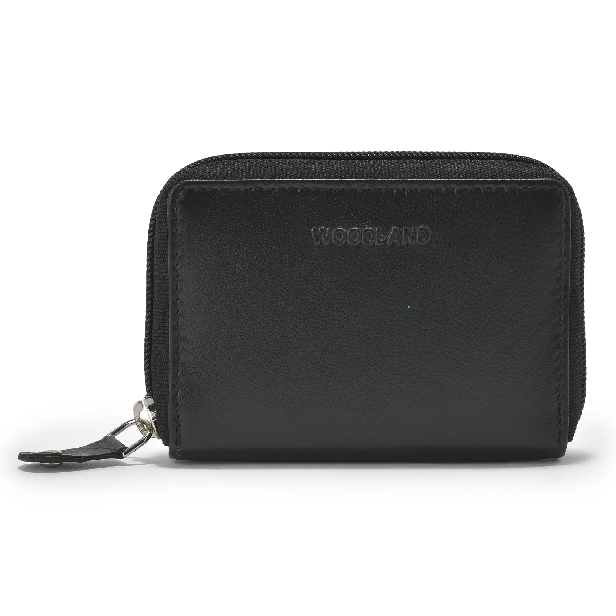 Woodland Softy Leather Zip Wallet in Black | WOODLAND